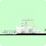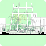 I offer an eating garden in the center of the room where restaurant tables are surrounding the exhibition area and the view focus points to plants and Canary Date Palm. In addition it has an event space with an open plan. Idea is to develop leisure activities and change botanic garden from specific museum to widely known and visited cultural center