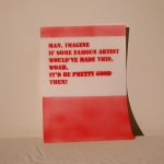 The work asks the audience to answer with texts and/or images what they believe art is.