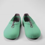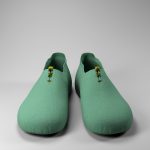 The elastic knitted on the upper is an easy way to create a comfortable grip around the foot. The rubber lace fastenings with a stopper do not require much effort to adjust the shoe properly. The consructions of the footwear have been chosen to be as flexible as feet. The mobility and flexibility of outsoles are provided by natural wool felt and vegetable tanned leather. The slipperiness of the sole is prevented by a non-slip pattern printed under the sole, which is inspired by the atomic and nuclear enthusiasm of the mid-20th century. The colours of the collection are chosen from the stylistics of the footwear and clothing brands for children, which emerged after the Second World War.