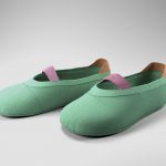 The collection of indoor footwear for children is based on the research of children’s shoes and consists five different models which are presented with designs, technical drawings and 3D visuals. The technical designs of the prototypes have been created taking into account the requirements of children’s footwear. The focus of the designs is on the uppers of the shoes, which can be done with industrial knitting. Knitted uppers are an innovative approach to footwear manufacturing, as they can be knitted without waste and the properties of the footwear can be knitted with a choice of yarns. The properties of the merino wool chosen for knitting the uppers are well suited for making children’s shoes, as the material allows the skin to breathe, feels soft and allows the foot to move freely.
