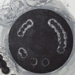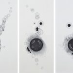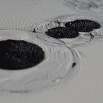 The painting series is based on compositional positioning of magnetites in biological matter and the artistic abstraction of it as well as breaking the pattern with symmetrically positioned magnets (magnetic etching). By that I’m looking for ways to draw with magnetic force lines. The series is inspired by a magnetic poisoning I lived through and a resulting short-lived ability to sense the magnetic fields of the Earth. The same way the magnetic field remains unseen to the eye, part of the painting would also. Only a closer look reveals a force, that made paint escape the canvas.