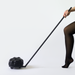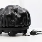 Techniques and materials: vacuum-wet forming leather; milled and turned wooden construction; vegetable tanned leather, pig leather, calf, wood, chain, castors, wheels made of leather and wood, model car.