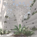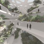 - Lisaks jääb katuse alla jalutusala, mis pakub vaateid avarale siseruumile ja ka ümbritsevale kõrbe maastikule. See on vajalik vabaaja veetmise paigana, mis meenutab looduslikku metsarada.