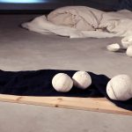 On tuba, kust keegi on lahkunud. Ruum, mis põhineb mälestustel ja muljetel. Sarnaselt kirjanikule, kes loob tegelase põhinedes fragmentidel enda elust, olen loonud installatsiooni, mida asustab üks keha ja teadvus, mis põhineb minul aga ei ole mina. Puutuvad kokku magamistuba, vannituba ja meri. Tegelane kasutab neid jättes endast jälgi. Hetketi kõrgenev tähelepanu. Seosed tekivad läbi materjalide, objektide ja nende koosluste ning viivad läbi kaootilise mõttevoolu teise aega, teistesse kohtadesse. Installatsiooniga käib kaasas tekst, mis kirjeldab muljeid, tundeid, mälestusi, kujutlusi ja tegevusi, mis selles ruumis aset leiavad. Läbi teksti lugemise akti projitseerub keha, mida kujutatakse vaid kaudselt, sellesse olukorda.